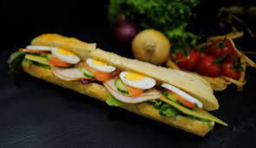 Broodje naar keuze belegd met gegrilde achterham, jonge kaas, komkommer,tomaat , sla en ei.